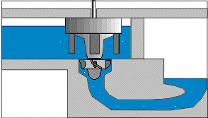 gleichzeitig wird das Wasser von unten über das Rohr nach oben angesaugt - obere Kugel schließt und die untere öffnet