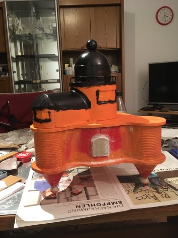 Das obere Teil vom Leuchtturm ist fertig und lackiert.